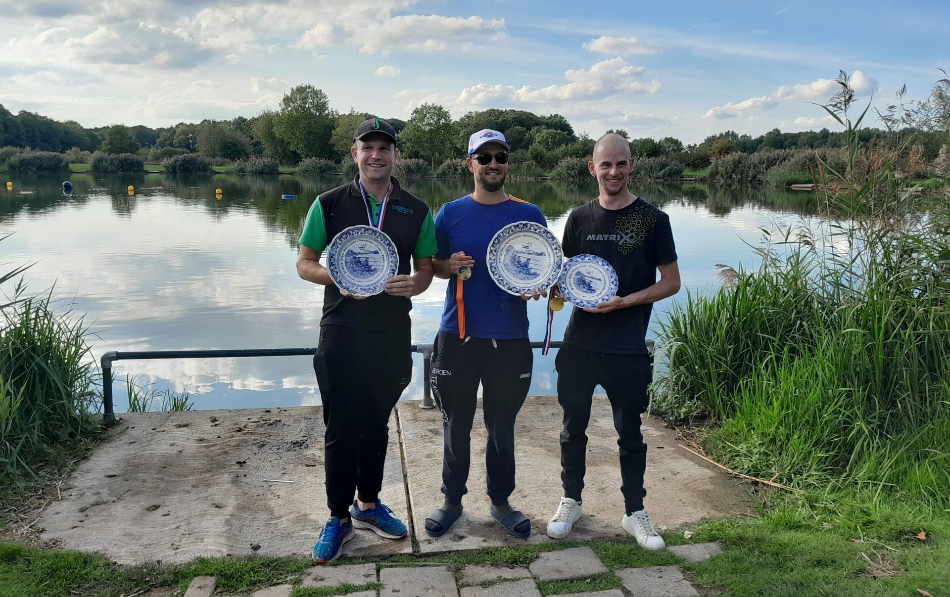 Tijdens het klaar maken van de materialen die benodigd worden om een wedstrijd te vissen begon het een beetje regenen en gelijk verschenen er Paraplu’s her en der op de stekken die later nog van groot belang zouden zijn. De wind bleef vrij rustig en zo kon de wedstrijd om stipt 9:00 uur beginnen en zou die tot 14:00 uur gaan duren zonder onderbreking. Niet zoals normaal werd er snel een vis gevangen en was het op stek 27 dat er de eerste vis werd gevangen na een klein half uurtje. Aan de weg kant werd niet overal gelijk vis gevangen en kwam de wedstrijd moeilijk op gang en begon ook de wind aan te trekken, dit had als gevolg dat helaas de opgezette tenten zich één voor één door de wind beïnvloed zelfstandig maakten en moesten worden afgebroken door vrijwilligers van de vereniging, éénmaal deze opgeruimd te hebben konden ook hun de wedstrijd weer vervolgen, maar werd de wind steeds erger en moest de één of andere deelnemer de paraplu vasthouden zodat deze niet weg waaide. Je zag ook dat de tactiek van de lange hengel veranderde in kort aan de kant vissen omdat het gewoonweg heel (te) lastig was om op die 10 meter te blijven vissen. Helaas moest 1 deelnemer door materiaalpech, ondanks alles geprobeerd te hebben om verder te kunnen vissen opgeven en de wedstrijd vroegtijdig verlaten. De wind en de regen speelde een grote rol in het vangen van vis en dat moest dan ook blijken toen de wedstrijd werd beëindigd om 2 uur en het wegen kon beginnen. Op veel stekken stopte de weegschaal bij 7Kg of minder en waren er maar 5 deelnemers die 10Kg of meer hadden, maar er is natuurlijk zoals altijd een uitzondering op het geheel en de deelnemer had dan ook 24,2 Kg in de leefnetten. Met alle eerlijkheid is dit normaal een getal dat als minste wordt genoteerd bij andere wedstrijden. De lijst éénmaal compleet, kon deze worden nagekeken en de beste 7 bekend worden gemaakt. En ook werd het totaal aantal Kilo’s bij elkaar geteld en was dit “maar” 173,8Kg. De uitreiking vond plaats door Dhr. M. Roumen als zijnde Voorzitter van de vereniging.